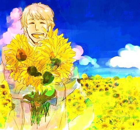 | Долгожданный Билли наполовину скрывался огромной охапкой подсолнухов, которую сунул Джейд чуть ли не в нос - так спешил подарить.